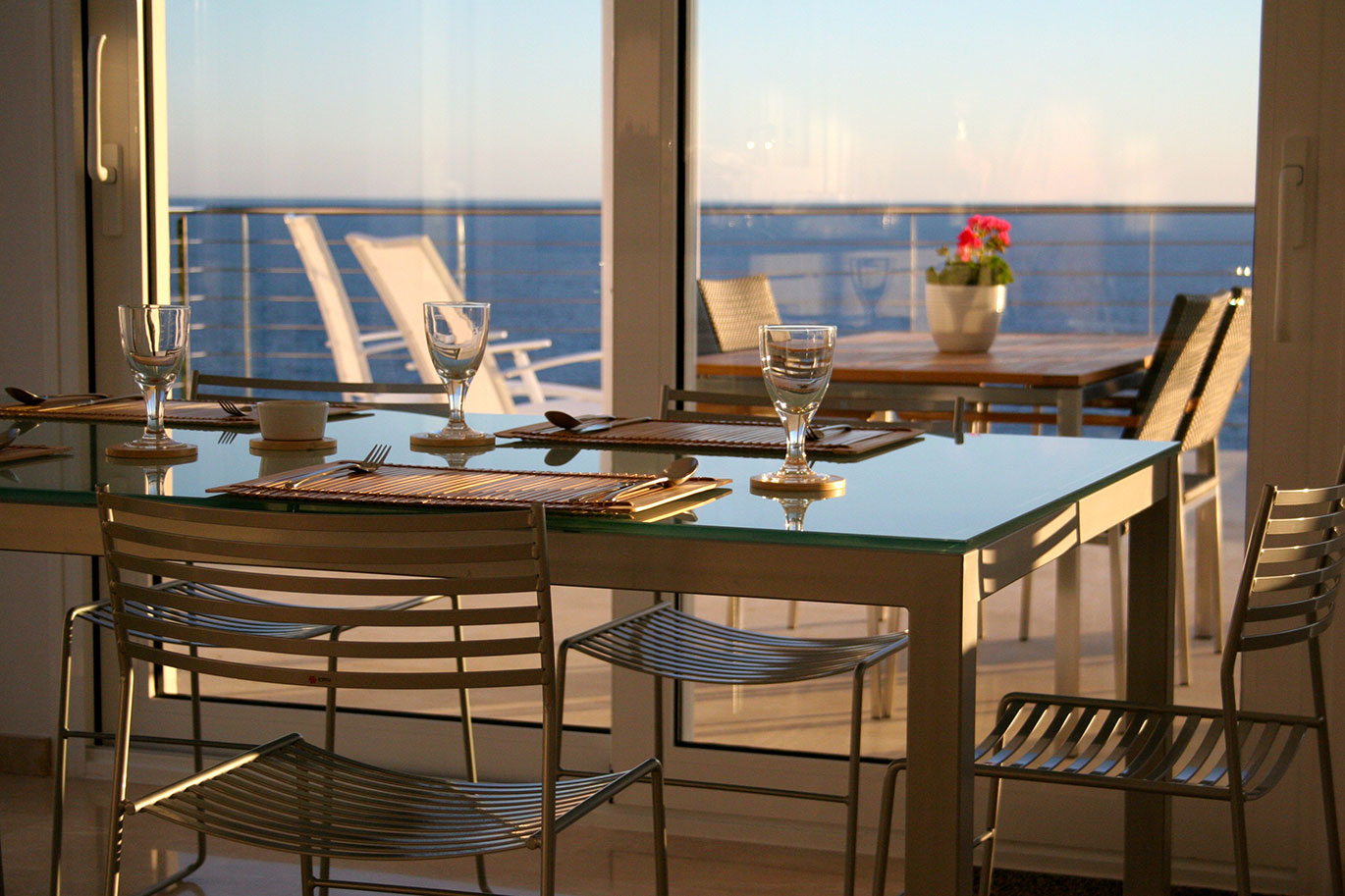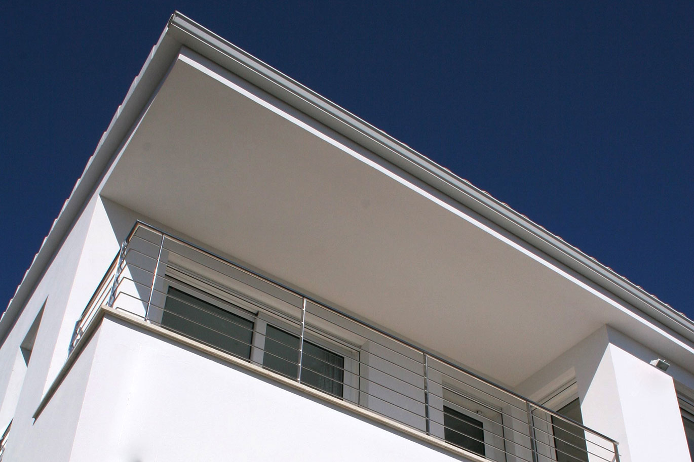 The new house is an essay in classic stainless steel, glass and white painted render. With the street at the front and the sea and cliff at the rear, the organisation of rooms and spaces is cleverly unconventional to make the most of the relatively small building footprint whilst maximising contact between the living spaces and the sea views.